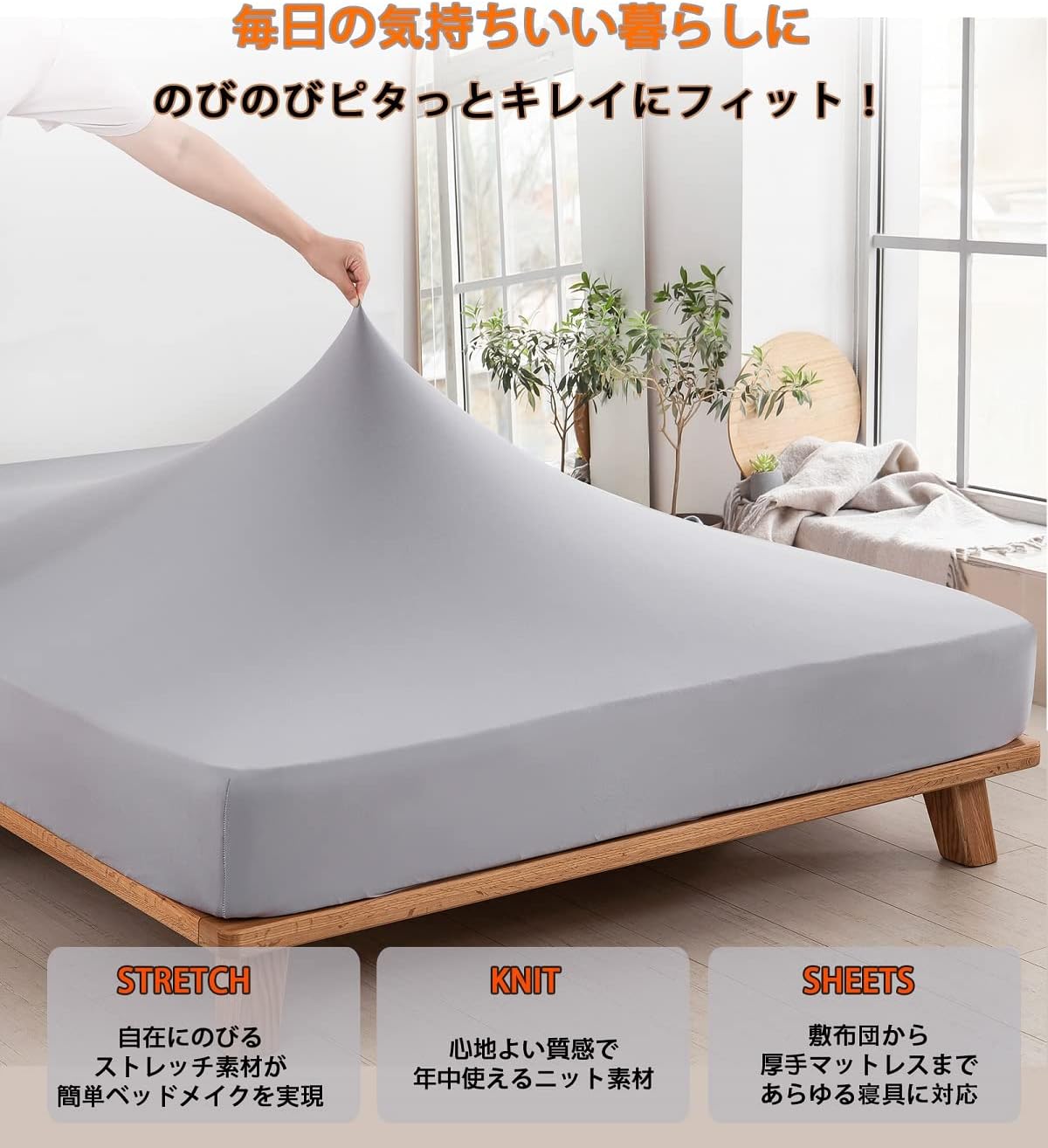 のびのびシーツ 様々なサイズにフィット ストレッチシーツボックスシーツ やわらかニット フィットシーツ 伸びる ロング ショート 薄型 厚型 ベッドシーツ 伸縮 マットレスカバー ベッドカバー 敷ふとんシーツ 無地 オールシーズン