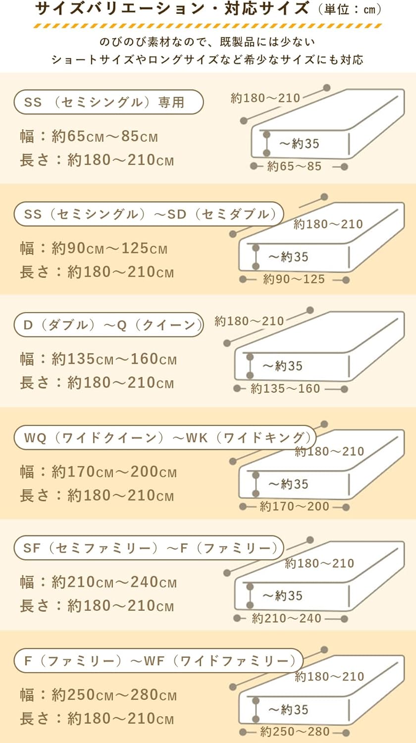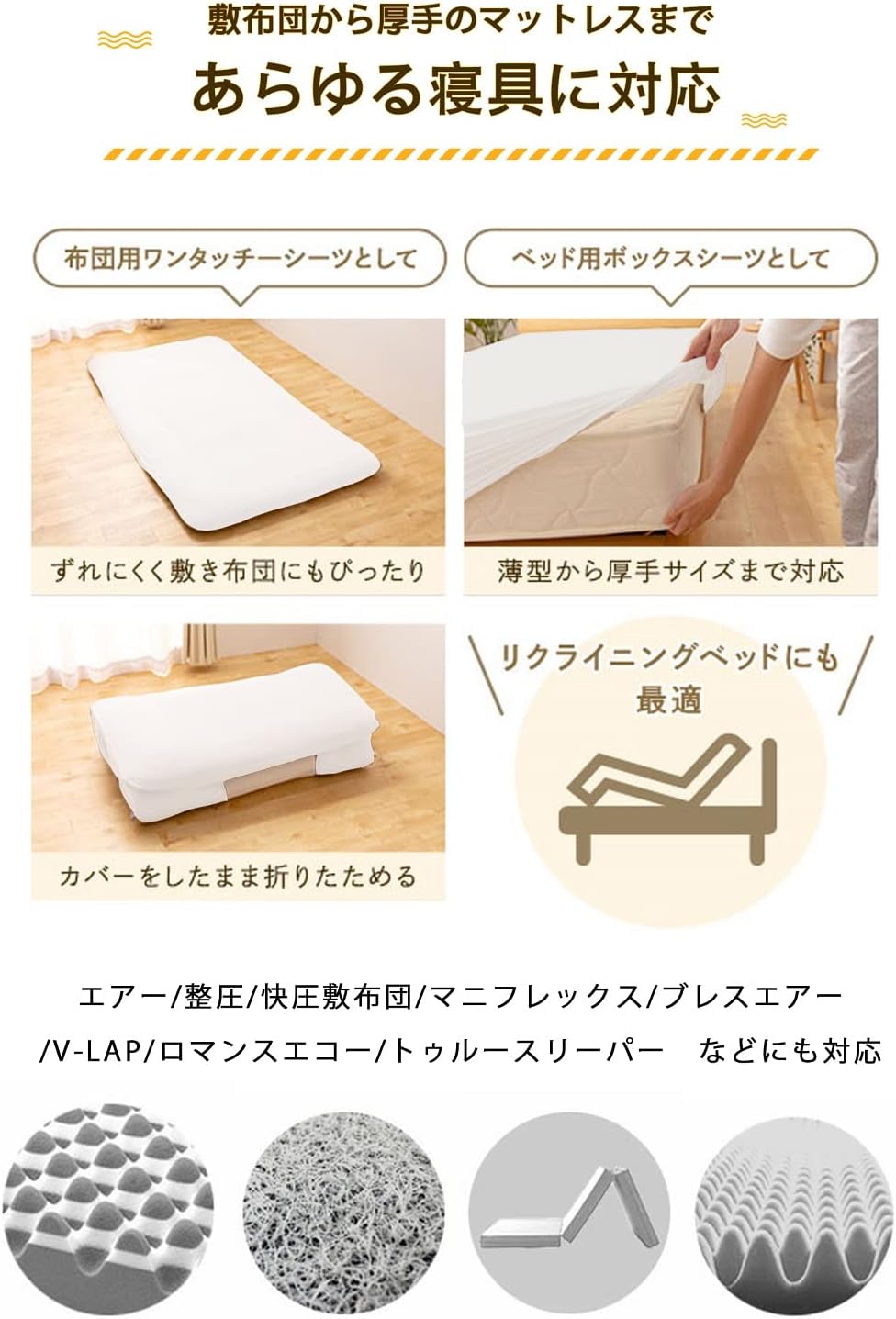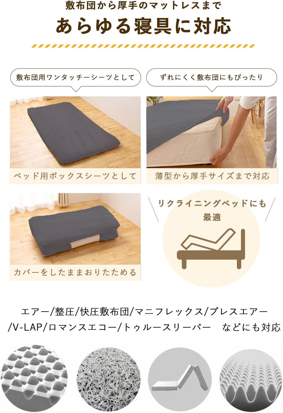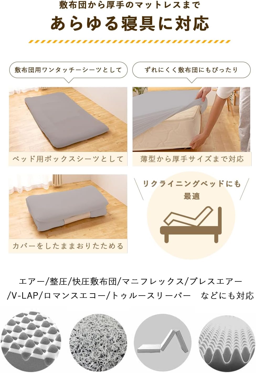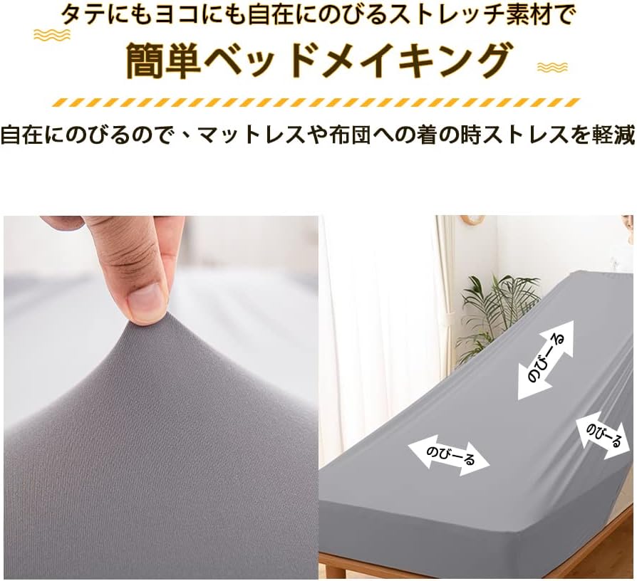 - 【簡単装着】びよーんと伸ばして誰でも簡単!慣れれば1分もかからずにセット完了!伸ばすだけでぴっちりフィットし、シワ一つないうっとりするベッドメイクが完成します。