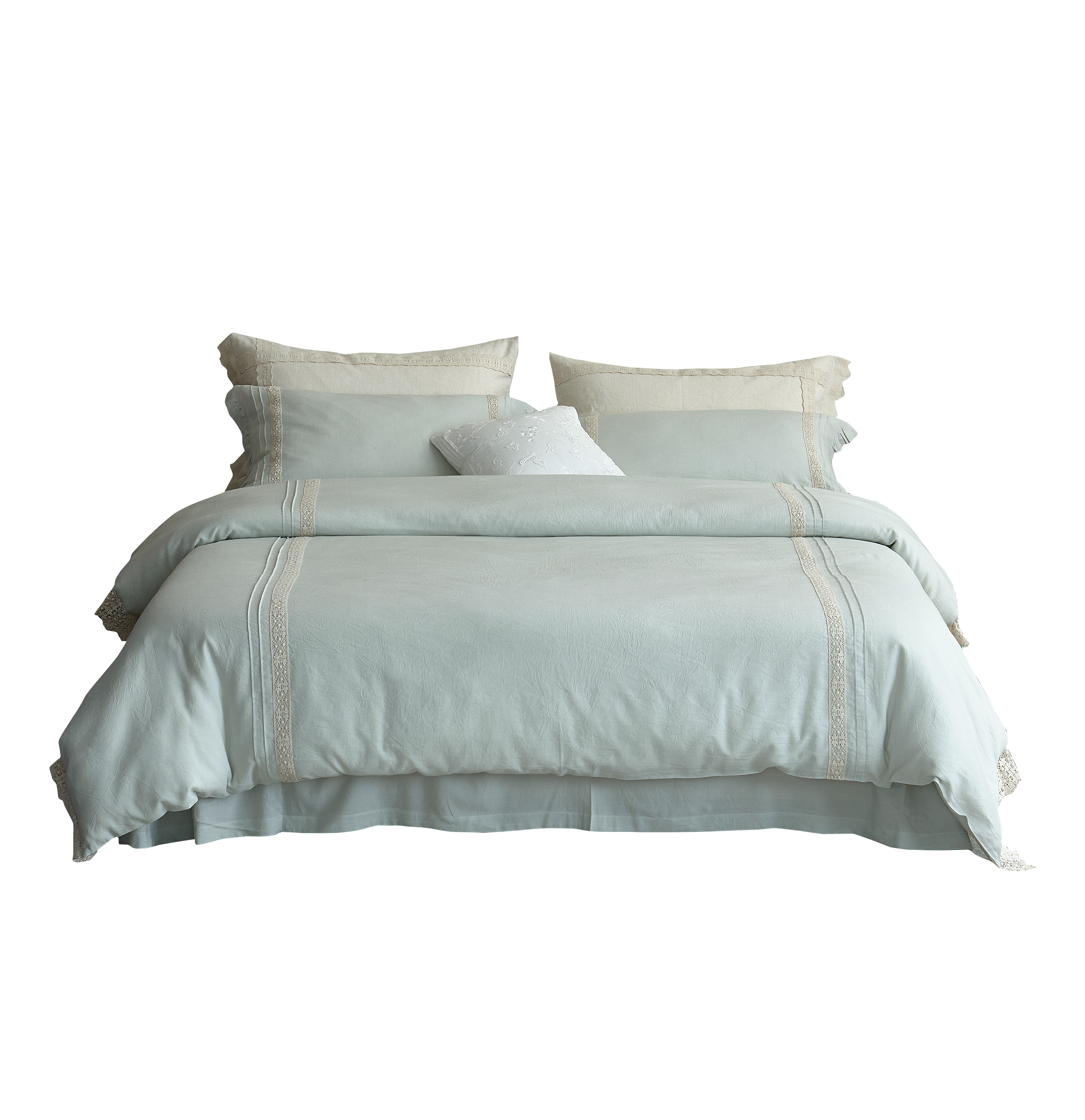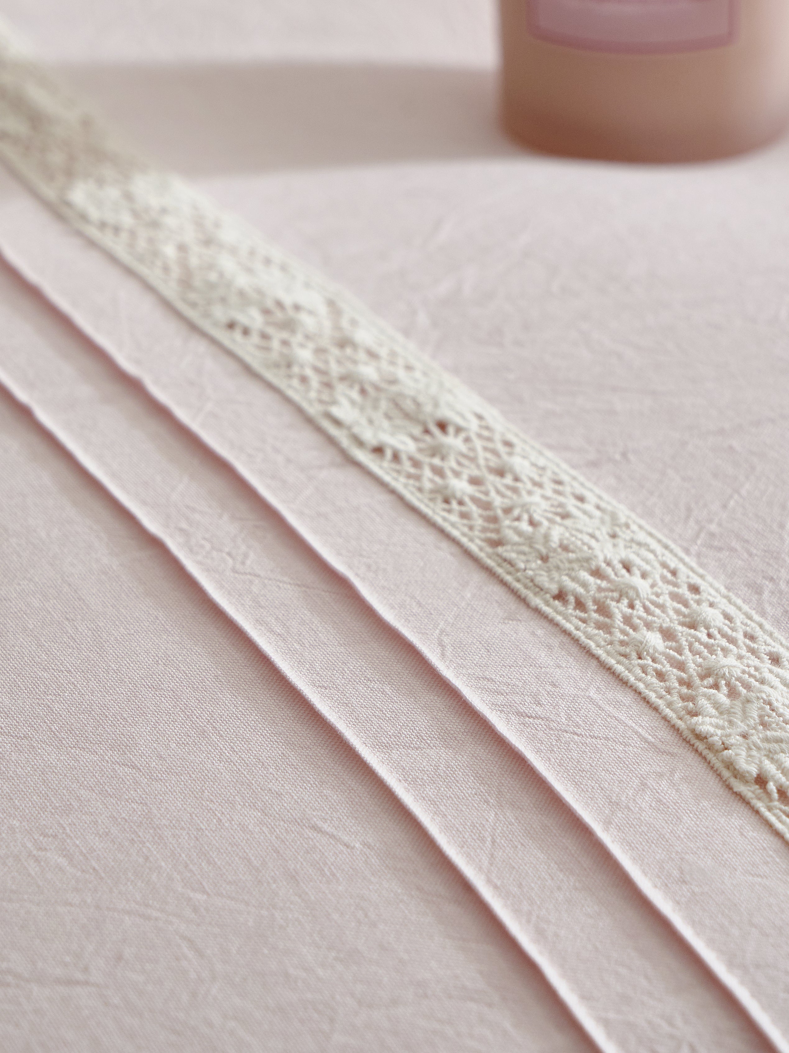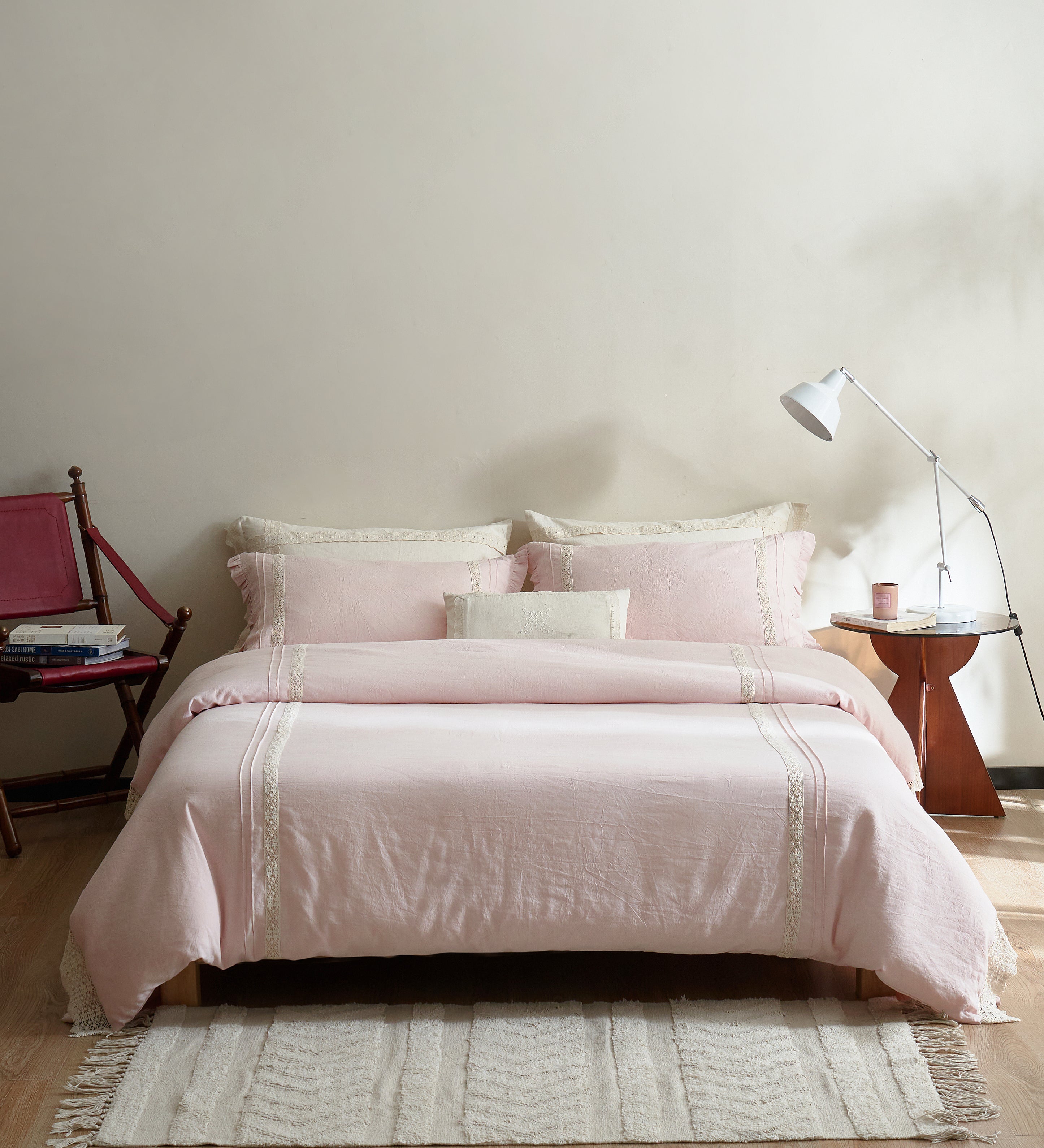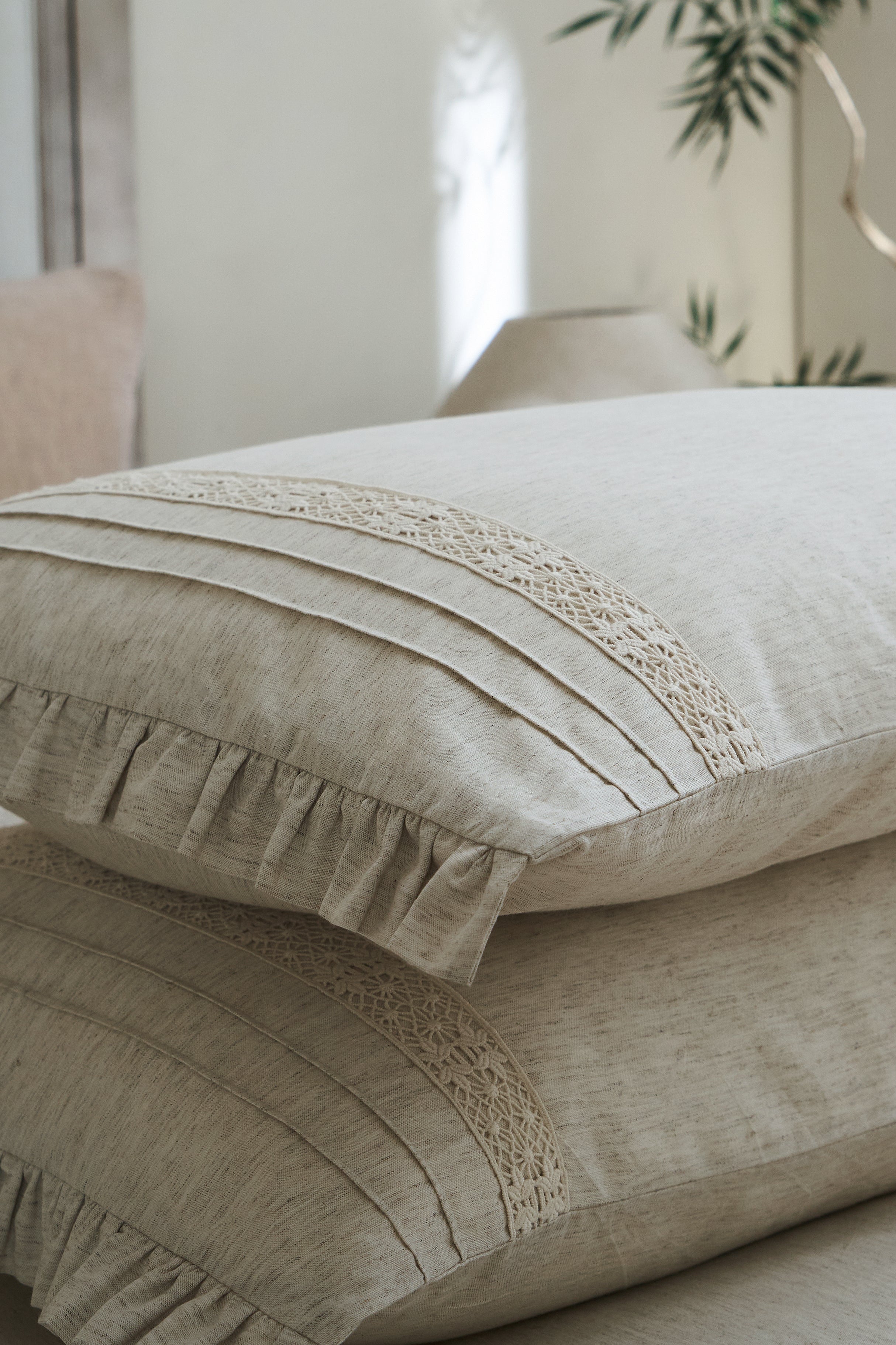 AVA.Home"浅語" (Sasayaki) プレミアム・テンセルリネン 4点セット | 生成り・くすみカラー | 繊細なレースとフリル